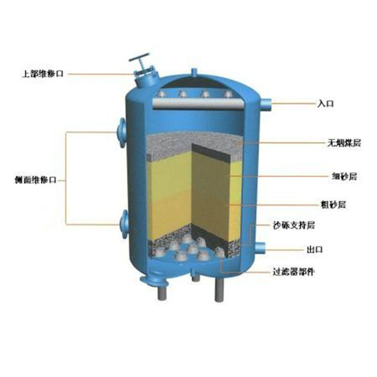 錳砂過濾器是一種過濾器濾料采用石英砂或者錳砂作為填料。有利于去除水中的雜質(zhì)。其還有過濾阻力小,比表面積大,耐酸堿性強,抗污染性好等優(yōu)點,石英砂/錳砂過濾器的獨特優(yōu)點還在于通過優(yōu)化濾料和過濾器的設(shè)計,實現(xiàn)了過濾器的自適應(yīng)運行,濾料對原水濃度、操作條件、預(yù)處置工藝等具有很強的自適應(yīng)性,即在過濾時濾床自動形成上疏下密狀態(tài),有利于在各種運行條件下保證出水水質(zhì),反洗時濾料充分散開,清洗效果好。砂過濾器可有效去除水中的懸浮物,并對水中的膠體、鐵、有機物、農(nóng)藥、錳、細(xì)菌、病毒等污染物有明顯的去除作用。并具有過濾速度快、過濾精度高、截污容量大等優(yōu)點。